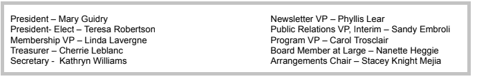 The slate of officers approved by the General Membership at the April 2026 Luncheon include: